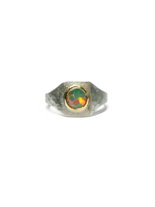 Earth from Afar Boulder Opal Matrix Gold and Silver Ring