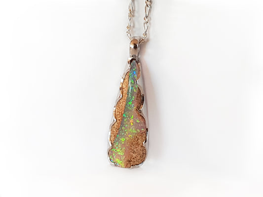 Silver Queensland Boulder Opal |Australian Seed Pod Pendant