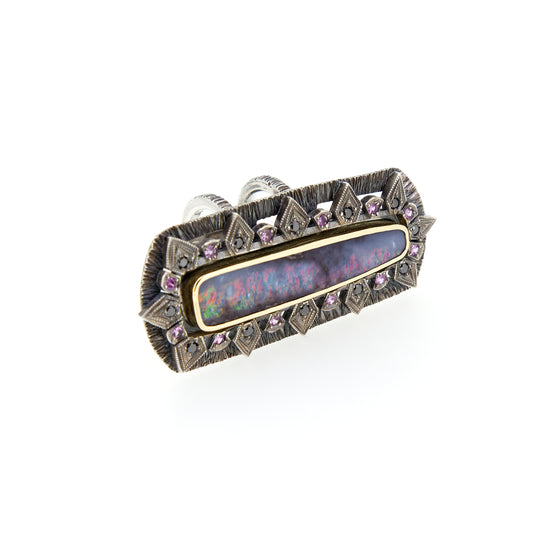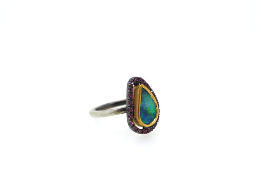 MISE À JOUR : Journey - Bague en opale boulder, grenat et diamant