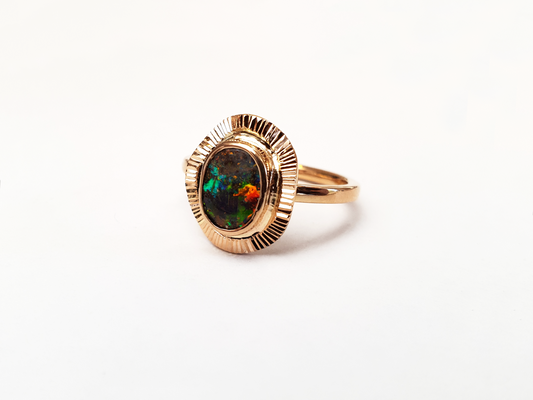 Anneau équestre | Opale boulder du Queensland en or 22 carats