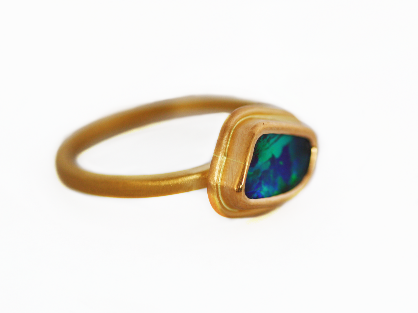 Bague Opale Boulder Queensland Or Bleu 22 Carats