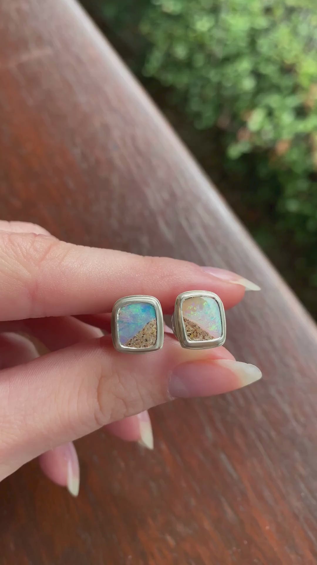 Like two small rockpools glistening at dusk, these natural opal earrings may become your next daily staples. The ironstone inclusions in the opals give the design a geometric style and make the design all the more unique. These earrings are the mini version and we have a larger version of this design also available.